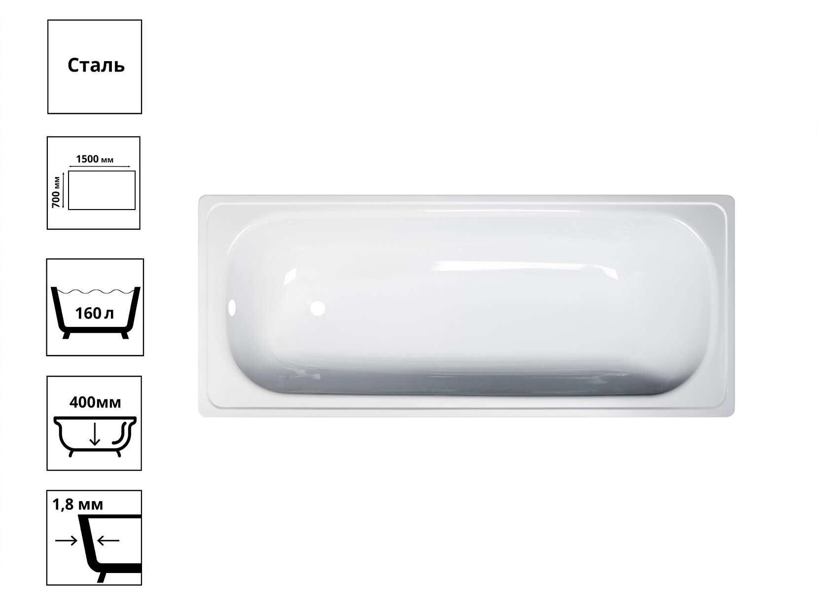 Ванна стальная ANTIKA 150х70 1,8мм с ножками