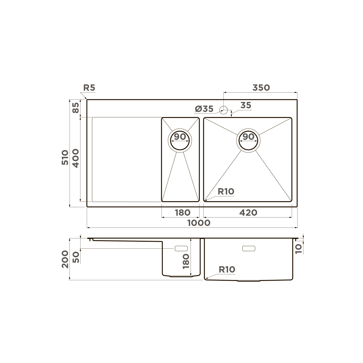Кухонная мойка OMOIKIRI Akisame 100-2-GM-R 4973104 (1000 x 510 мм), врезная, нержавеющая сталь, вороненая сталь