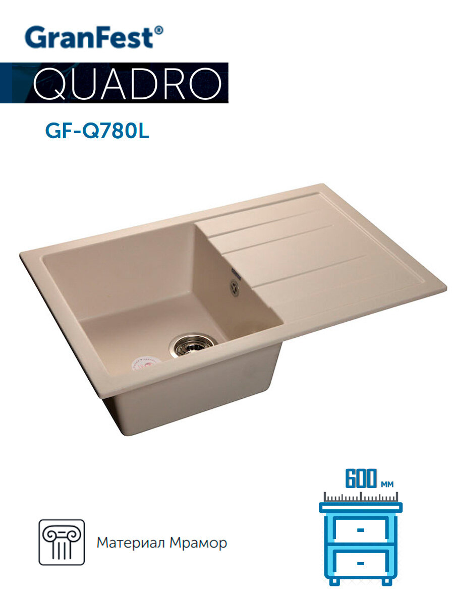 Мойка для кухни из мрамора GranFest Мойка для кухни из мрамора GranFest Quadro GF-Q780L бежевый