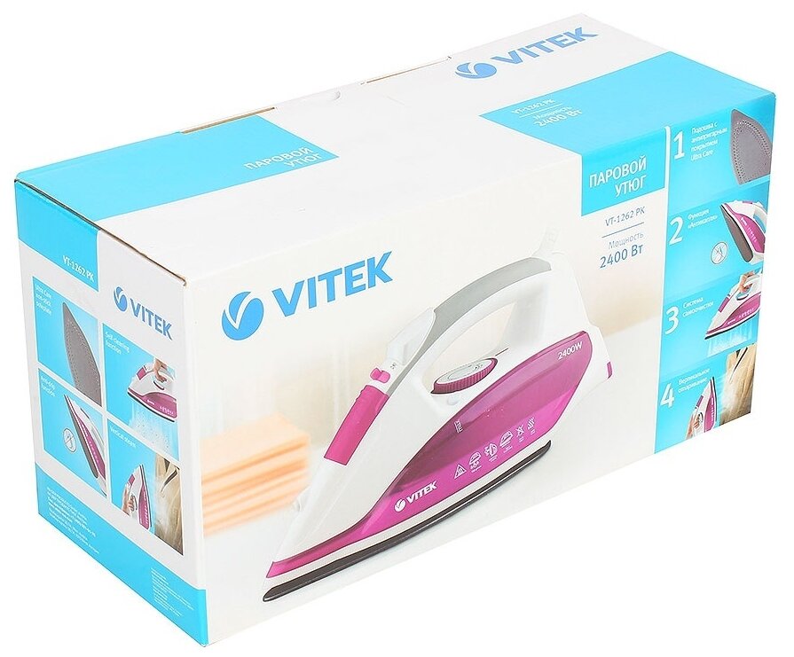 Ниже Вы можете прочитать отзывы на Утюг VITEK VT-1262 PK, ознакомится с подробными характеристиками, посмотреть интересные обзоры и фотографии на Утюг VITEK VT-1262 PK.