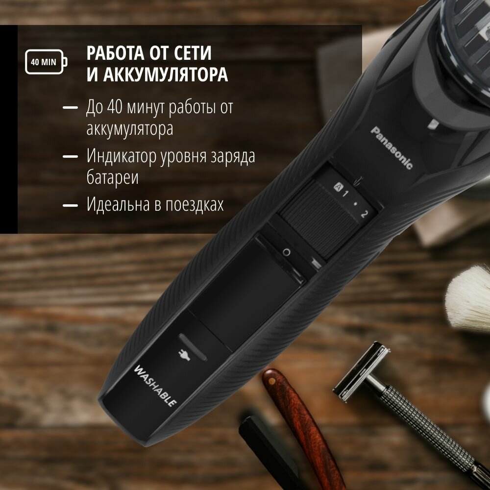 Машинка для стрижки волос Panasonic ER-GC51-K520, работа от сети и аккумулятора, регулирующая насадка, электрическая