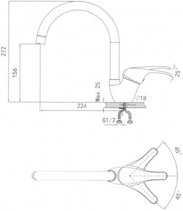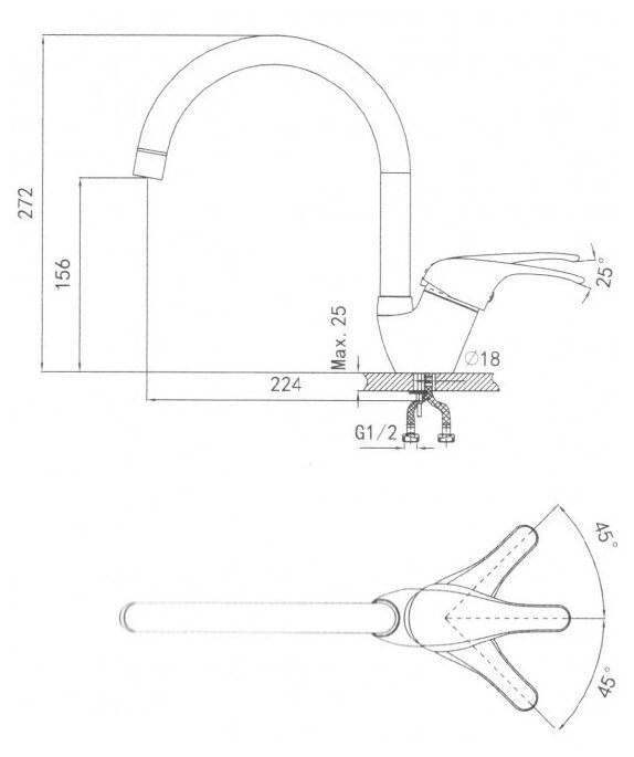 Кухонный смеситель GRANULA 1024, хром смеситель кухонный