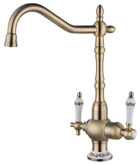 Смеситель для кухни под фильтр ZorG ZR 336 YF-50 BR, латунь бронза, ручки и основание с орнаментом, ретро