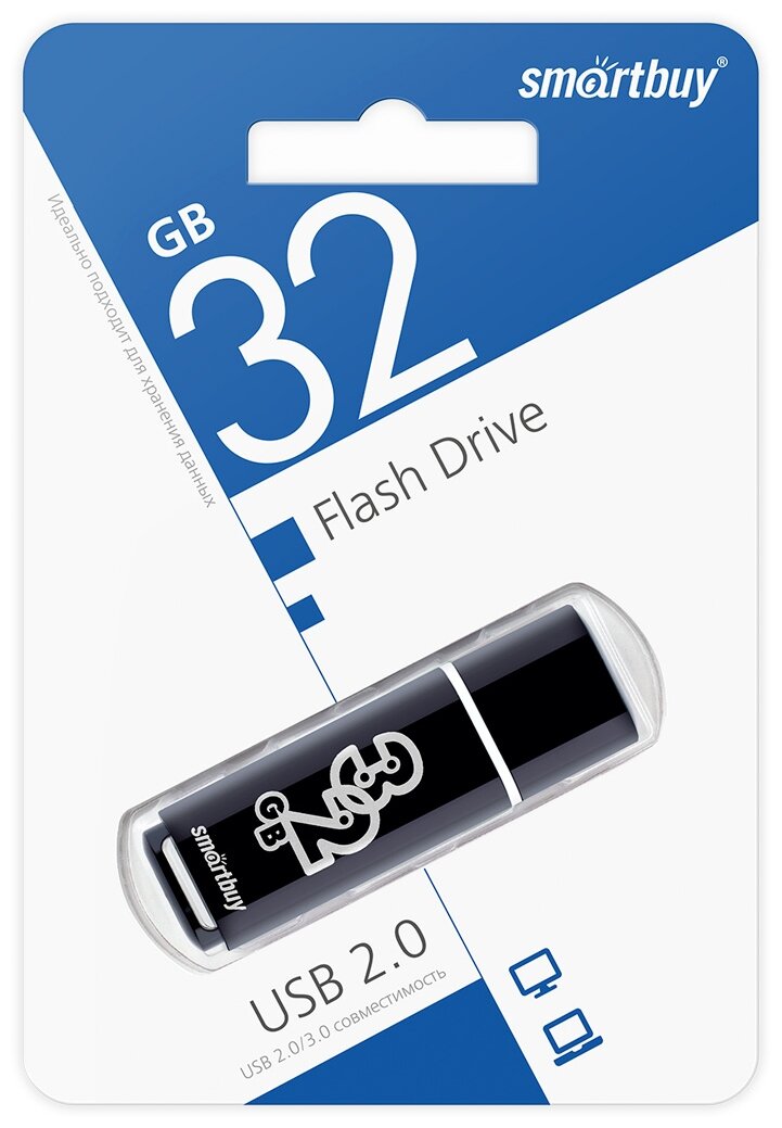 Флешка 32 ГБ SmartBuy Glossy USB 2.0 черный