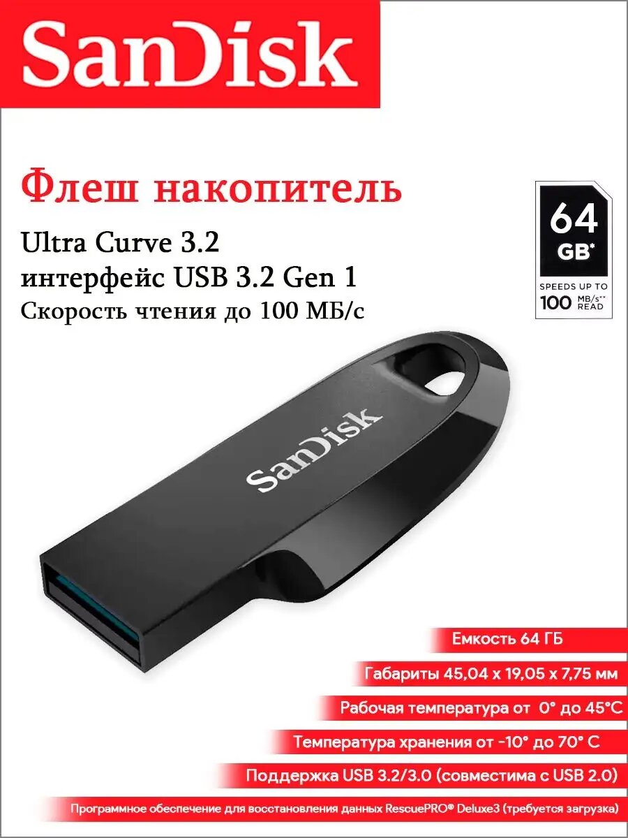 Флеш-накопитель SanDisk USB 3.2 64 ГБ Flash drive Ultra Curve