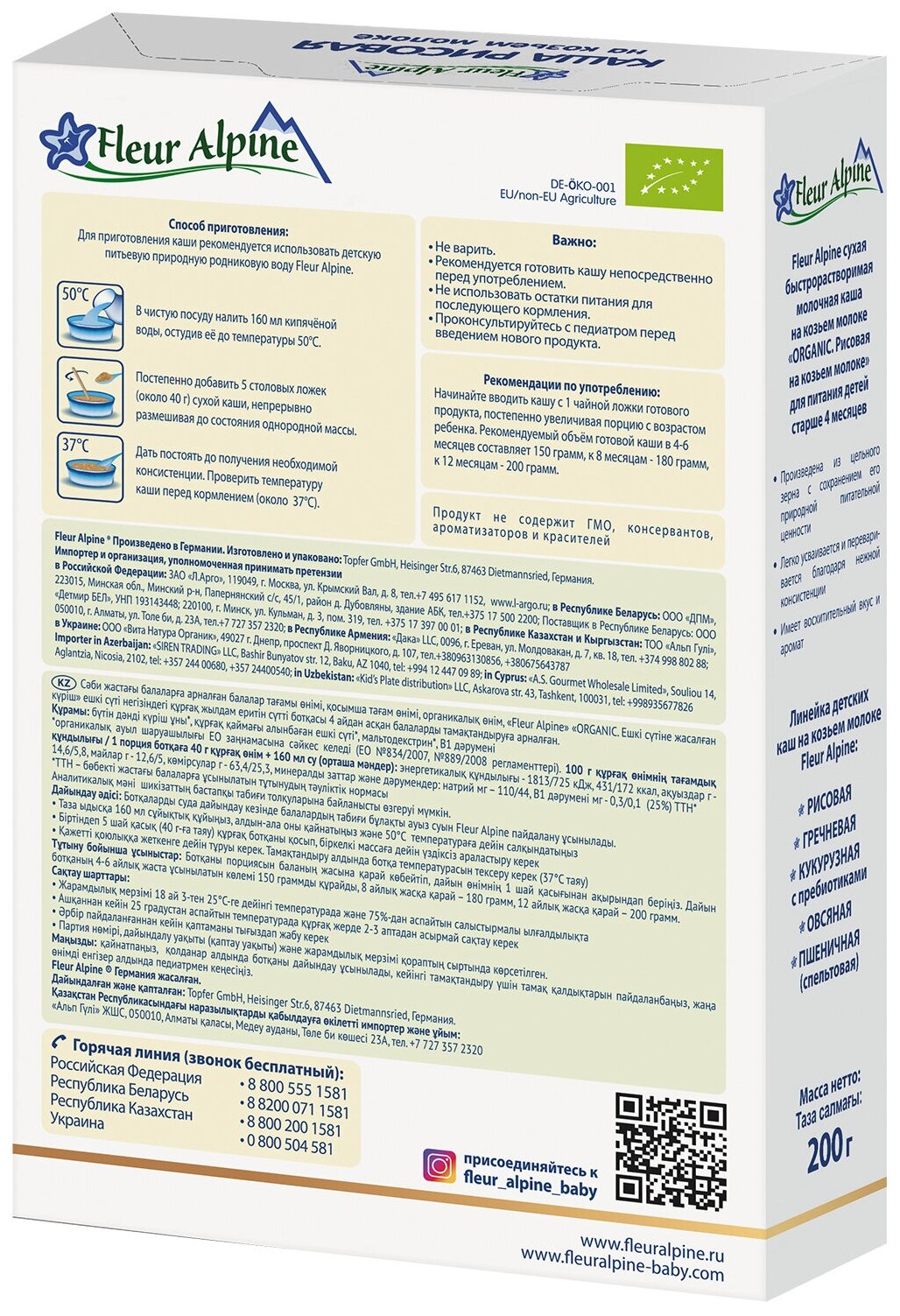 Ниже Вы можете прочитать отзывы на Каша Fleur Alpine молочная рисовая на козьем молоке (с 4 месяцев) 200 г, ознакомится с подробными характеристиками, посмотреть интересные обзоры и фотографии на Каша Fleur Alpine молочная рисовая на козьем молоке (с 4 месяцев) 200 г.