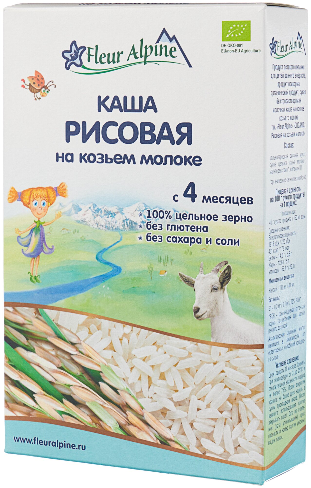 Купить Каша Fleur Alpine молочная рисовая на козьем молоке (с 4 месяцев) 200 г