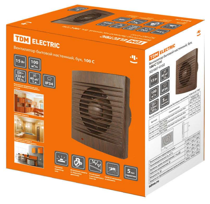 SQ1807-0102 Вентилятор бытовой накладной, 100 С ЭКО (бук) TDM