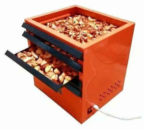 В не очищенном эквиваленте, можно еще сверху добавить решеточку. время сушки 12 часов. Это самый сложный продукт в плане сушки. Мощности более чем достаточно (750 вт) это на полную мощность, можно включить половину это режим важен, для сушки трав, на пример. Корпус разборный металлический, думаю, что ремонтопригодна, две спирали и оден вентилятор. |