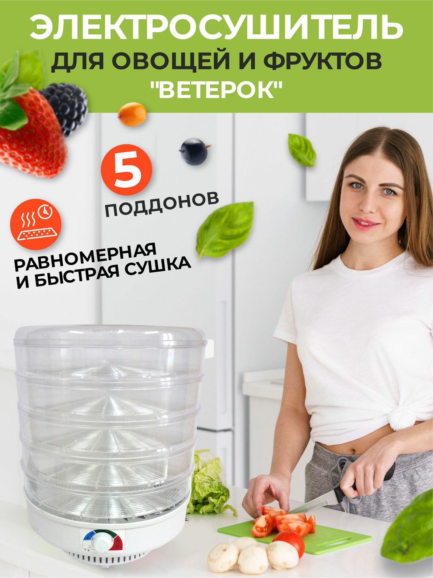 Сушилка для овощей и фруктов Ветерок, 5 поддонов, цв. упаковка прозрачный
