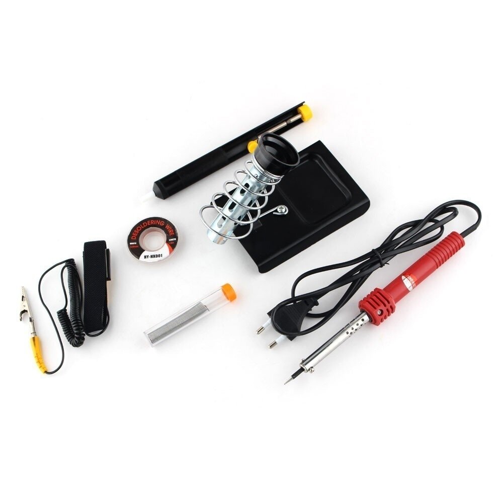 | Дополнительная информация | в комплекте: 1.5 м оплётка для удаления припоя салфетка для очистки жала паяльника подставка под паяльник с держателем отсос для припоя, 200 х 20 мм антистатический браслет мультиметр пинцет на разжим,115 мм пинцет с 3-мя зубцами, 118 мм лупа, х 5 раз складной нож кисточка, 160х17 мм футляр для мелких деталей, 135х21 мм кисточка с металлической щетиной и стамеска, 180 мм прямое шило и держатель, 180 мм изогнутое шило и стамеска,180 мм приспособление для вытаскивания DIP-микросхем (экстрактор), 104 мм приспособление для вытаскивания PLCC-микросхем (экстрактор), 100х49 мм приспособление для вставки DIP-микросхем (инсертер), 104 мм |