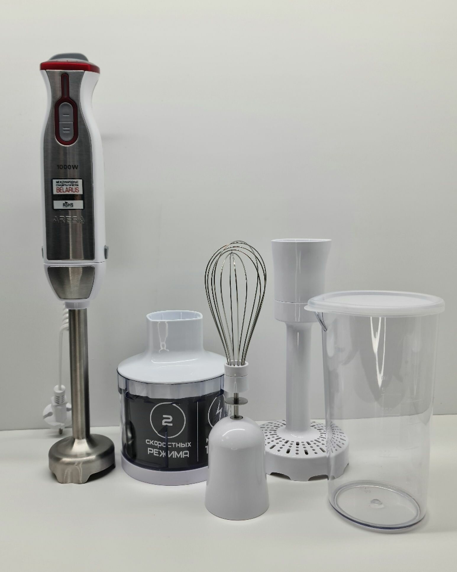 Погружной блендер ARESA AR-1107, белый/серебристый/красный