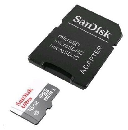 Карта памяти Sandisk Ultra microSDHC + SD Adapter, 16 ГБ, 80 МБ/с Class 10