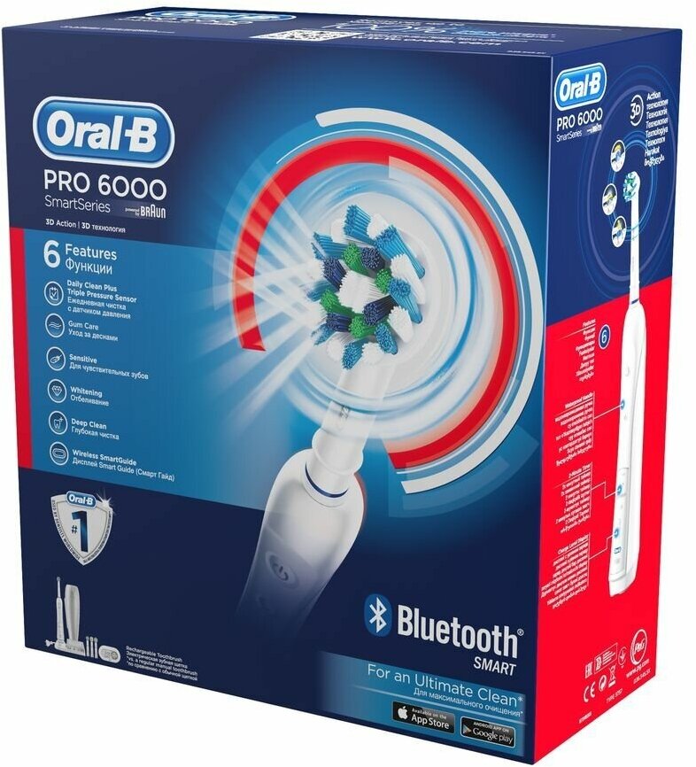 Ниже Вы можете прочитать отзывы на Электрическая зубная щетка Oral-B Pro 6000, D36.565.5X, Smart Series, тип 3764, ознакомится с подробными характеристиками, посмотреть интересные обзоры и фотографии на Электрическая зубная щетка Oral-B Pro 6000, D36.565.5X, Smart Series, тип 3764.