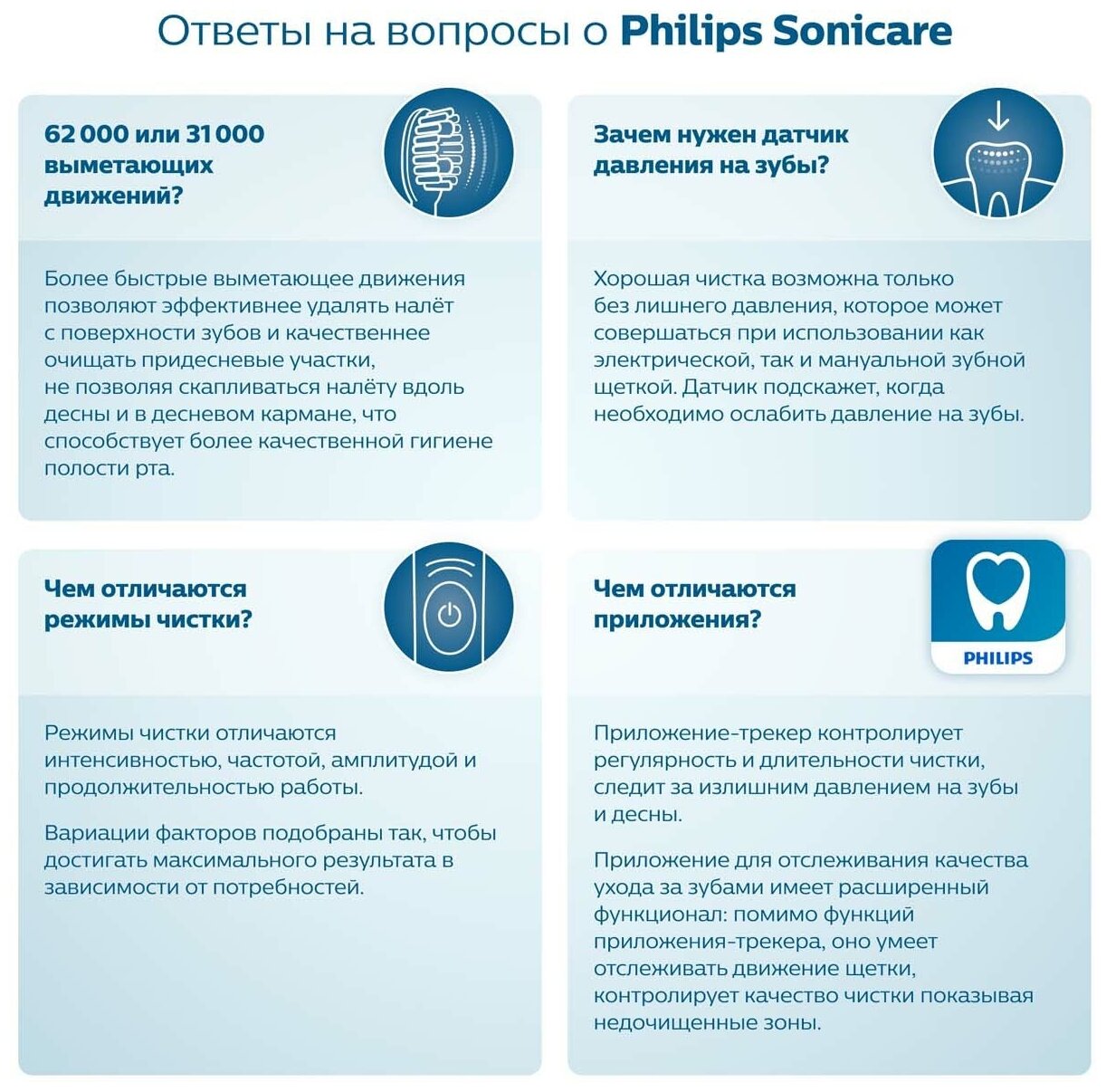 Чистят все электощетки с функцией sonicare(которые пробовал) одинаково хорошо. Однако, рекомендую именно такую "простую" версию. В более продвинутых, с несколькими режимами работы и т.д., действительно полезных функций не прибавляется. Цена на щетку нормальная, но очень высокая на насадки(которые менять приходится часто)