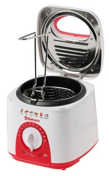 SAKURA Фритюрница Sakura SA-7654R, 950 Вт, 750 мл, антипригарное покрытие, фильтр, бело-красная