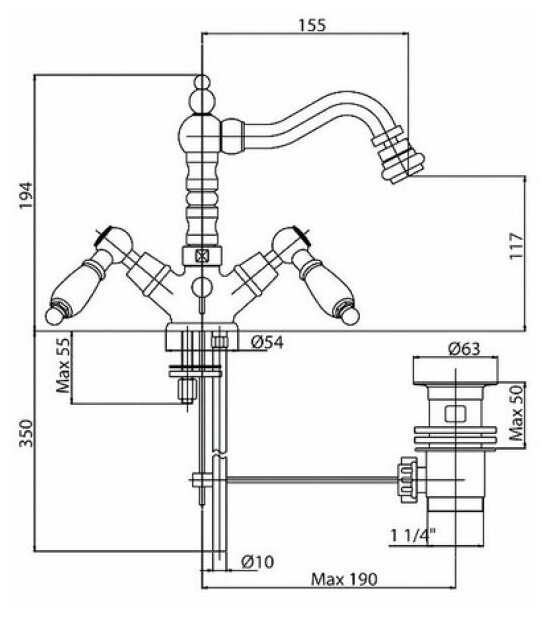 Смеситель Cezares First FIRST-BS2-03-Bi для биде с донным клапаном