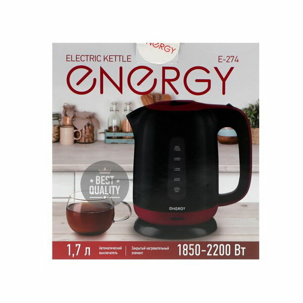 Чайник электрический Energy E-274, пластик, 1,7 л, 2200 Вт, бело-красный Energy 9461871 .