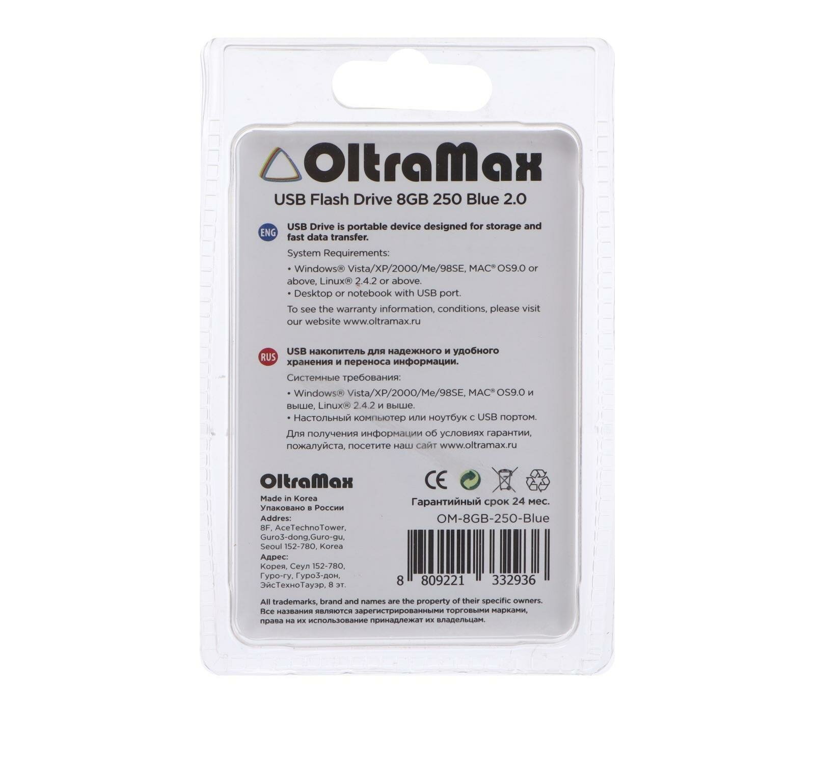 Oltramax флеш накопитель 8Gb Oltramax USB2.0 синий (OM-8GB-250-Blue)