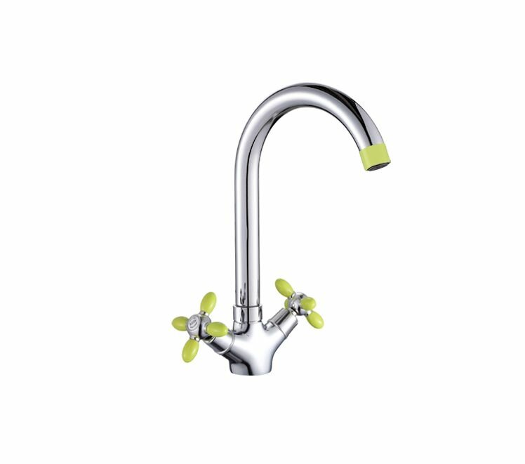 Купить Смеситель д/кухни с высоким изливом, цветные ручки, аэратор -зеленый, хром, Potato (Китай), арт P4471-11