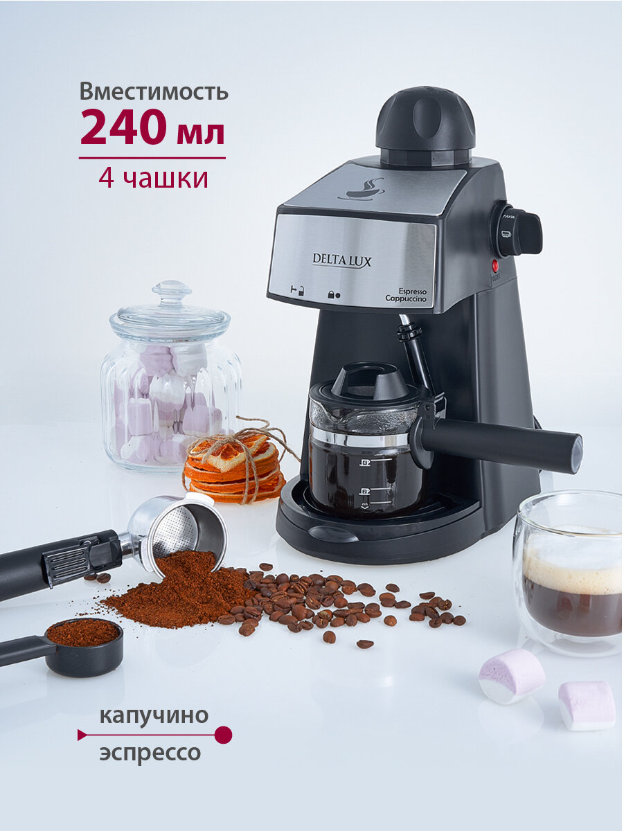 Кофеварка DELTA LUX DL-8151К черная рожковая 240мл