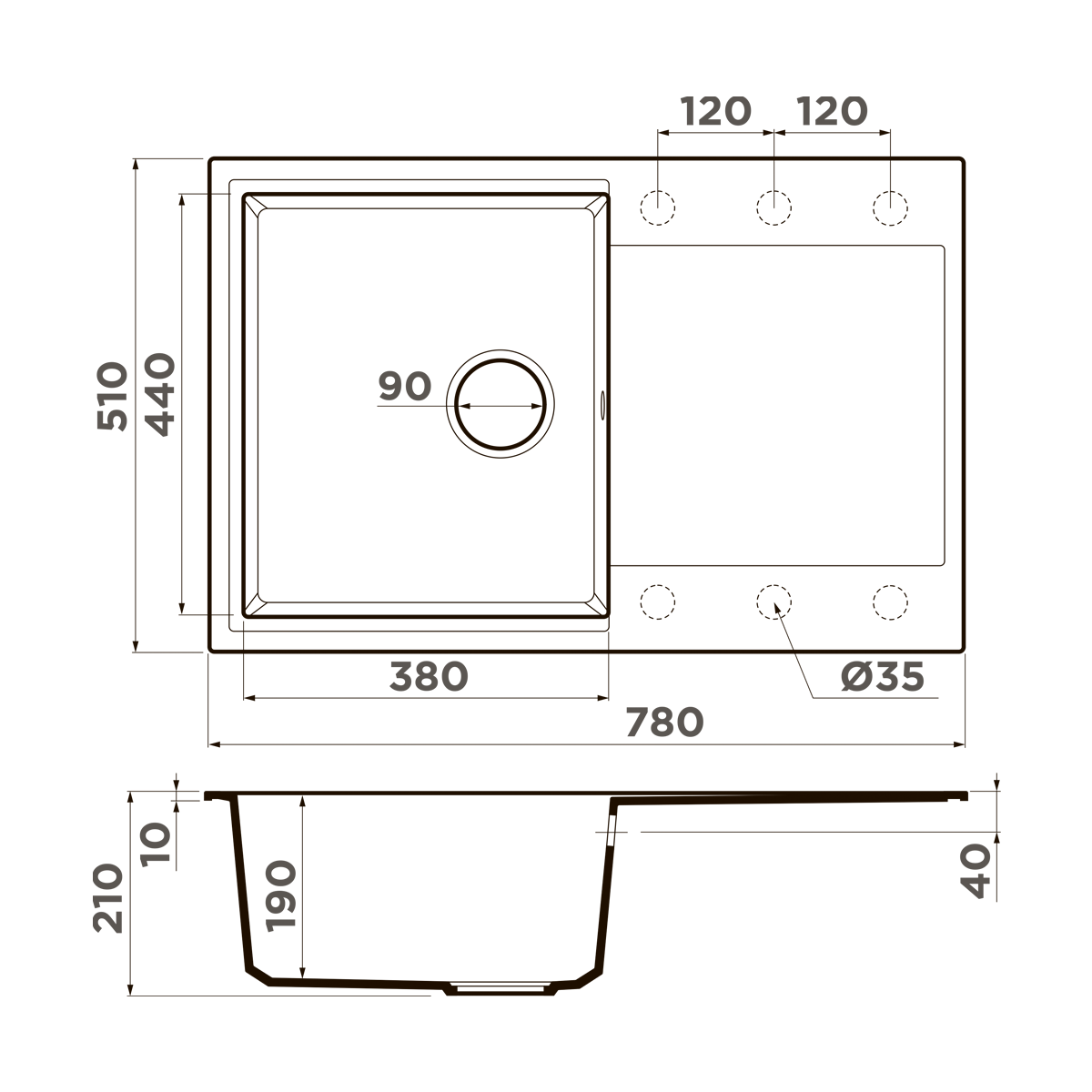 Кухонная мойка OMOIKIRI Daisen 78-DC (780 x 510 мм), врезная, Artgranit, темный шоколад Omoikiri 4993326