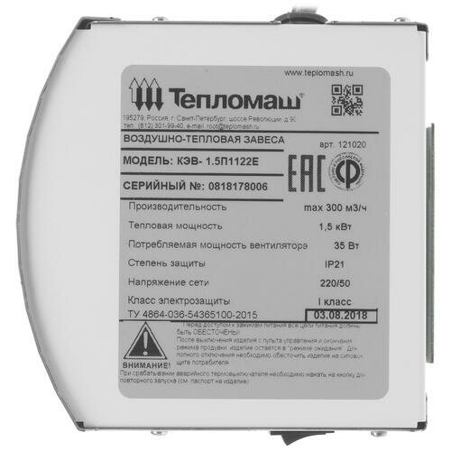 Тепломаш Тепловая завеса Кэв-1,5п1122е 121020 . интересное: