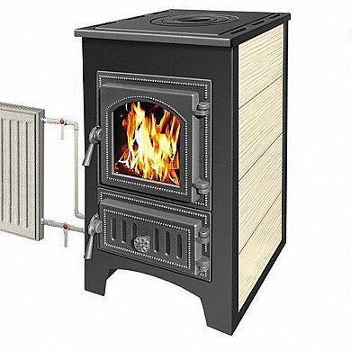 Печь-Камин везувий ПК-01 (270) с плитой и теплообменником, бежевый интересное: