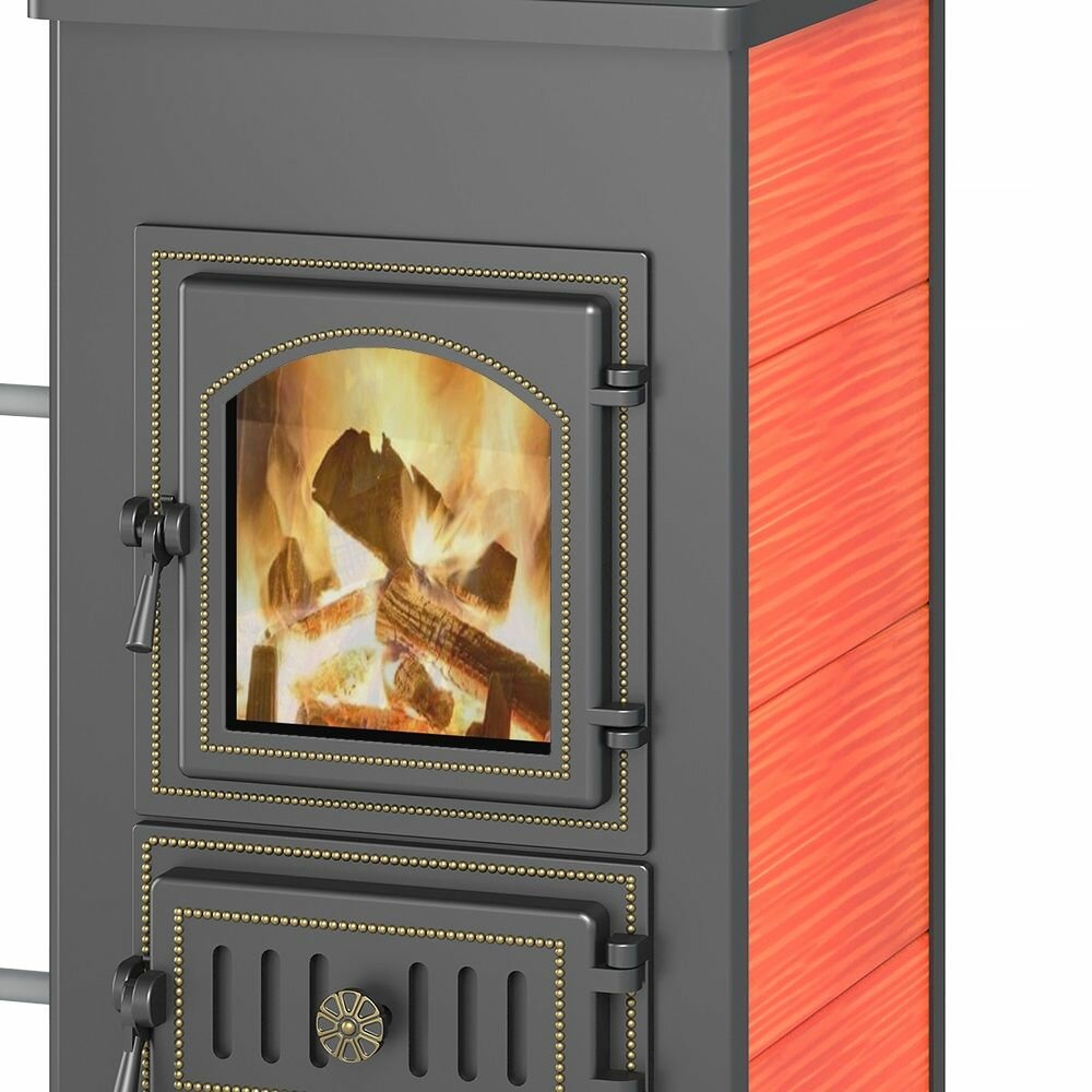 Везувий Печь-камин Везувий ПК-01 с плитой и Т/О (Дверь: 270, Облицовка: Красный кафель)