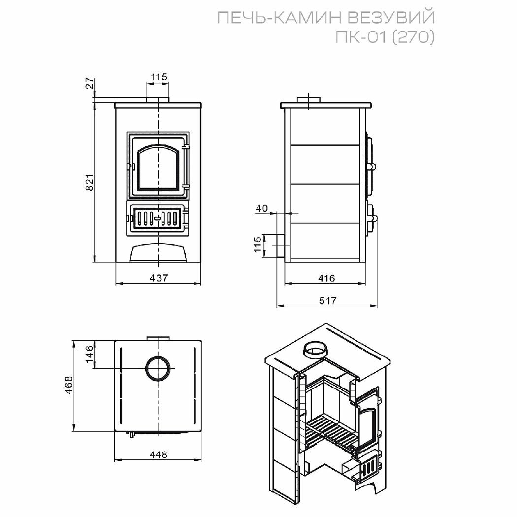Печь-Камин везувий ПК-01 (270) с плитой (красн.) 9 кВт