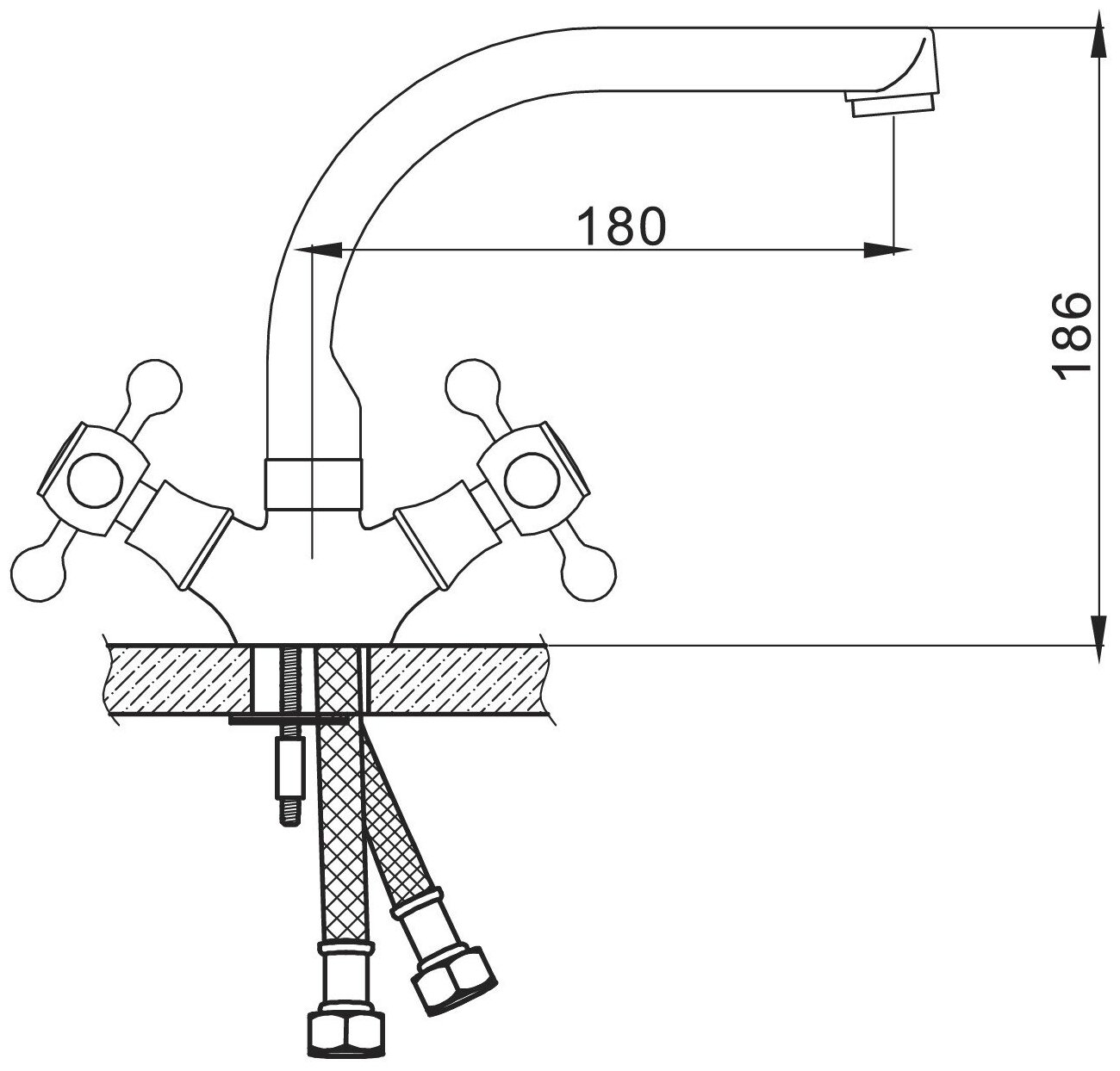 Смеситель для кухни Accoona A5876, двухрычажный, хром Accoona 1155050 .