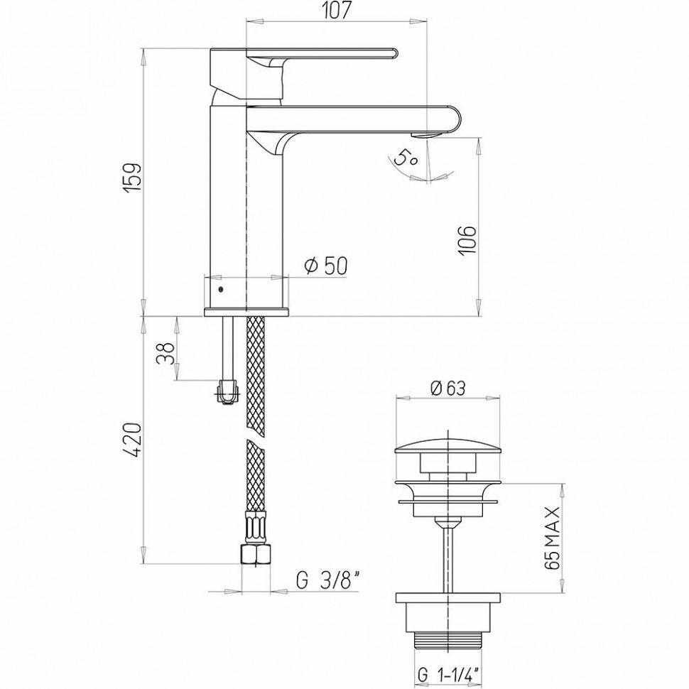 | Длина излива | 107 мм |