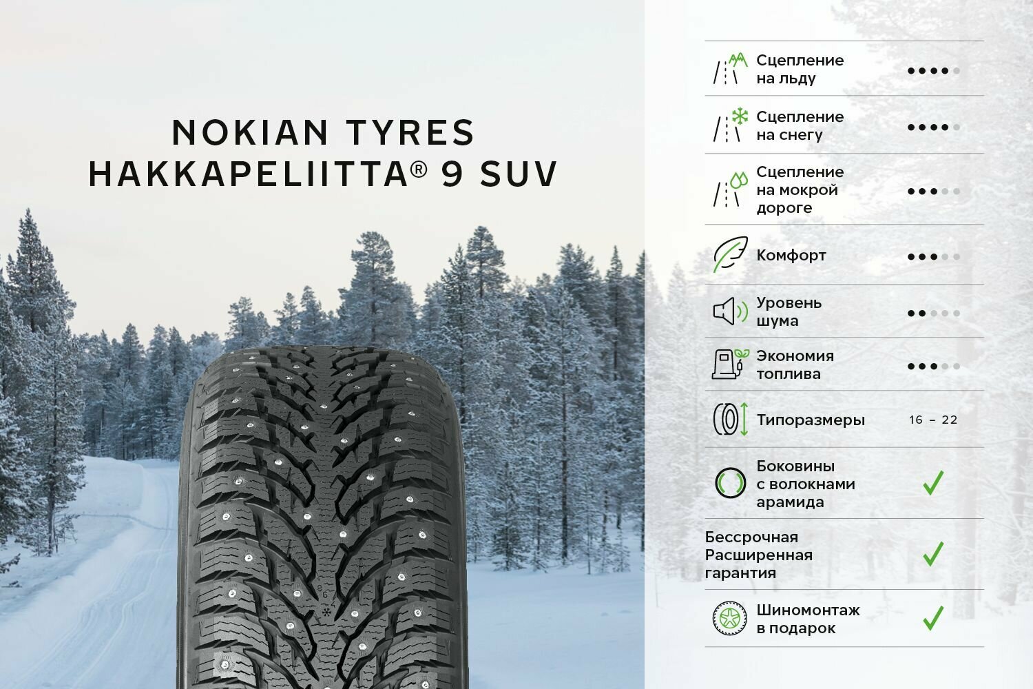 Шины Nokian Hakkapeliitta 9 SUV 285/40R22 110T Шип