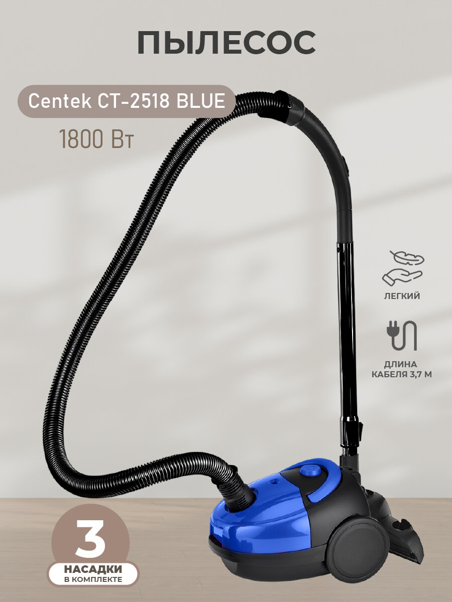 Пылесос с мешком Centek CT-2518 Blue (синий/черн) 1800/350Вт, 1,5 л тканевый мешок