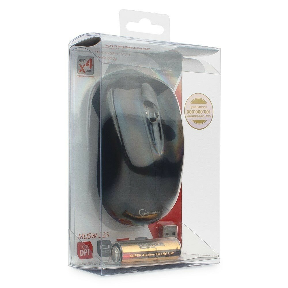 Мышь Gembird MUSW-325 Black USB (Мышь беспроводная, 2кнопоки+колесо-кнопка, 2.4ГГц, 1000 dpi)