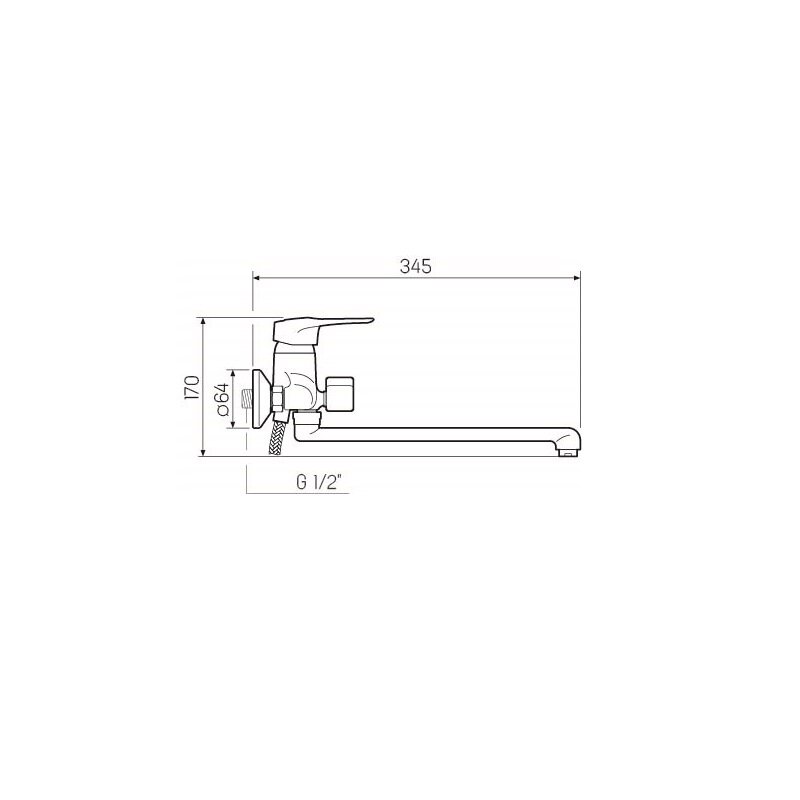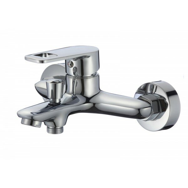 Смеситель РМС SL55-006E для ванны одноручный, длинный излив, настенное крепление, евро-переключение на душ, хром, цинк