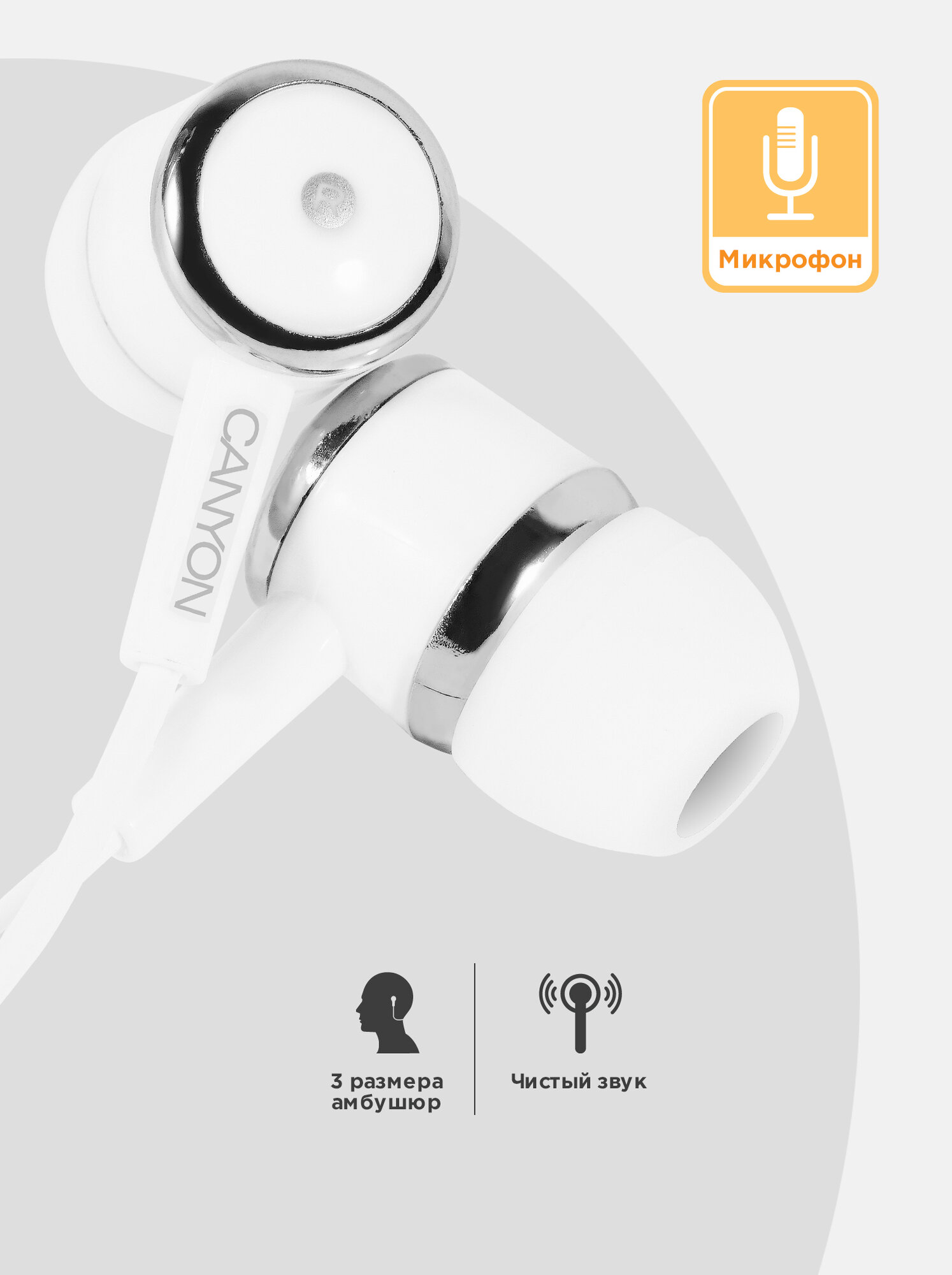Наушники Canyon EPM-01, проводные, микрофон, белые (CNE-CEPM01W)