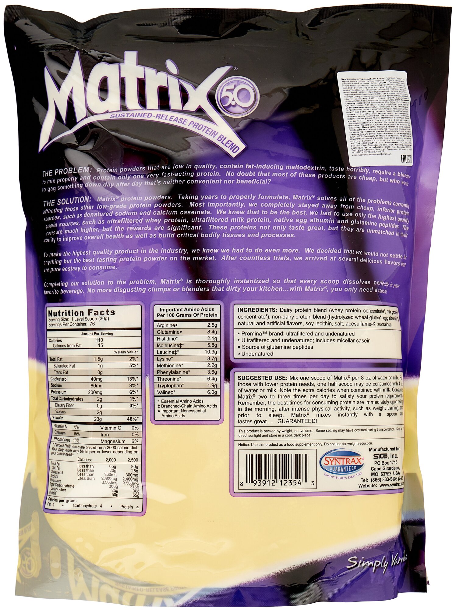 СохранитьSYNTRAX Matrix 5.0 2,27 кг (Пакет) (Simply Vanilla) интересное: