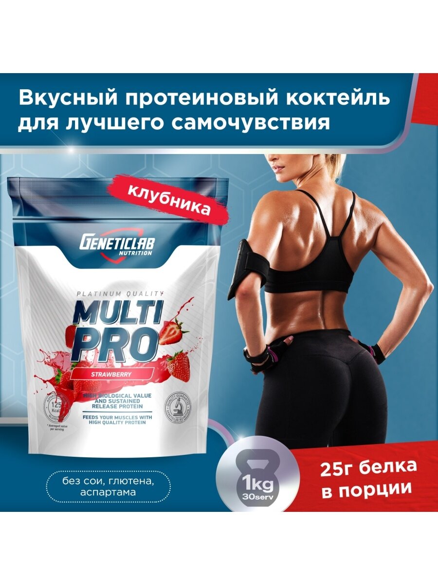 Купить Протеин мультикомпонентный Geneticlab Nutrition Multi Pro (1000 г) Клубника