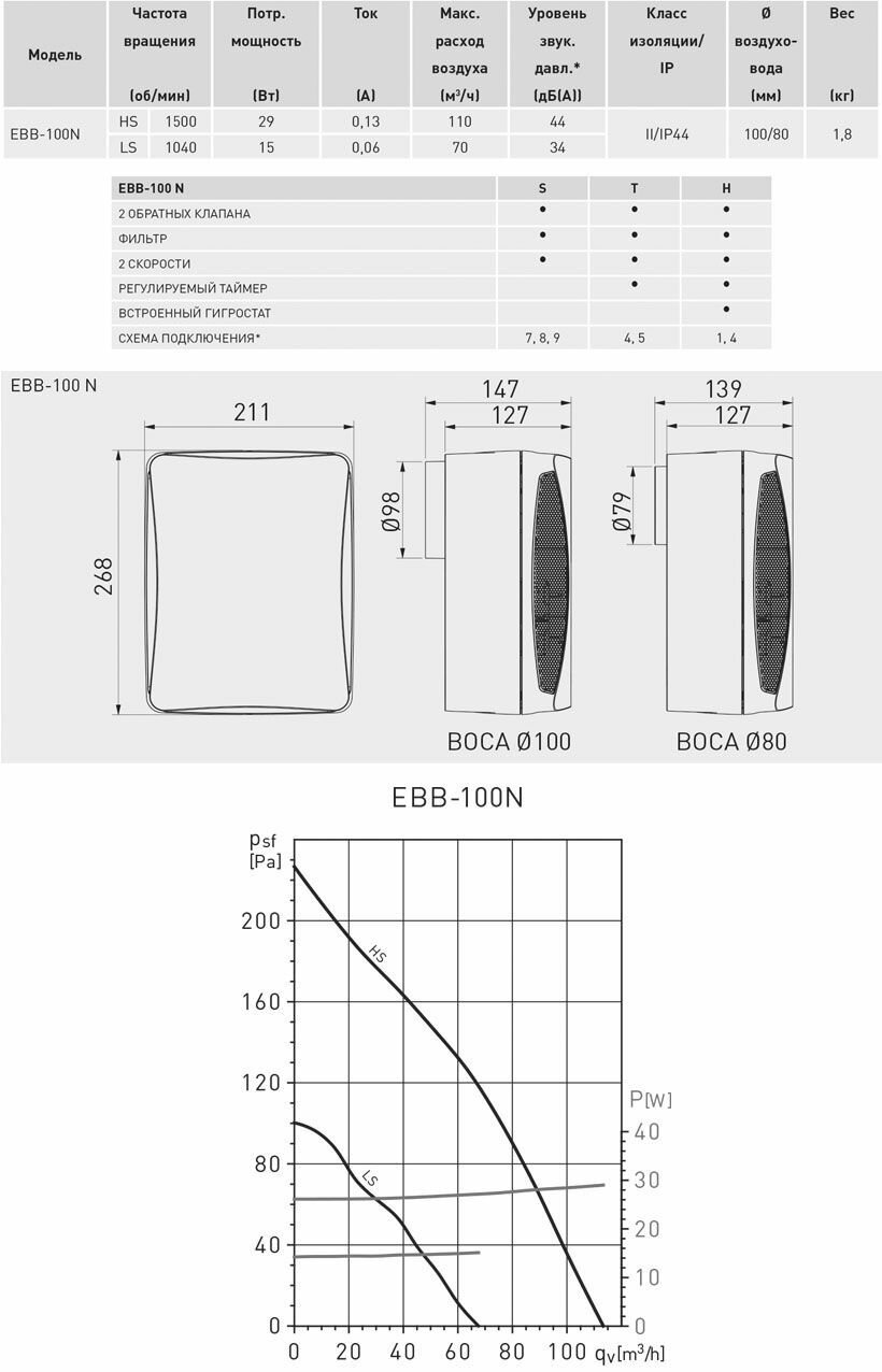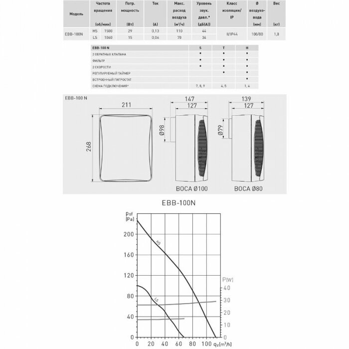 Вентилятор EBB 100N T