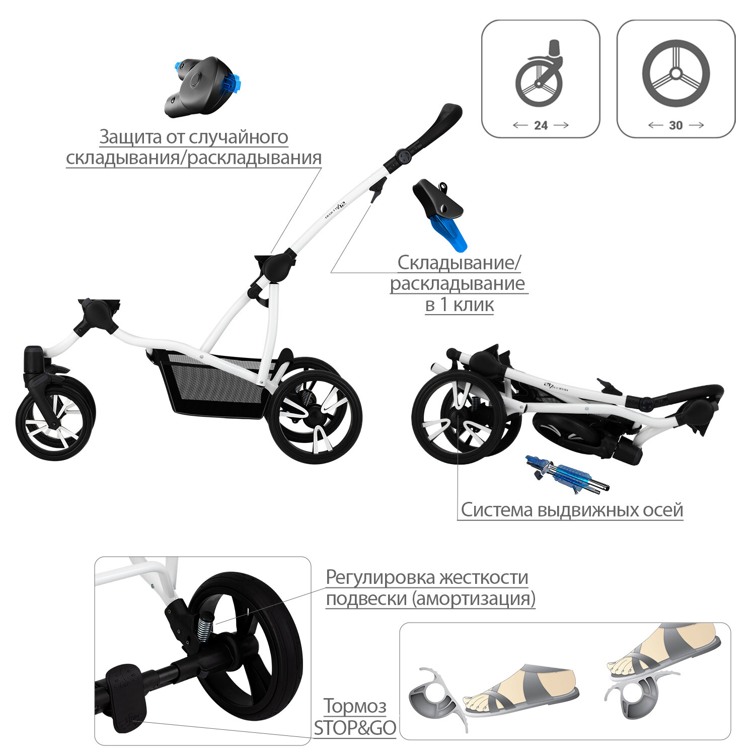 Коляска 2в1 Bebetto 42 Comfort для двойни шасси Белое 05