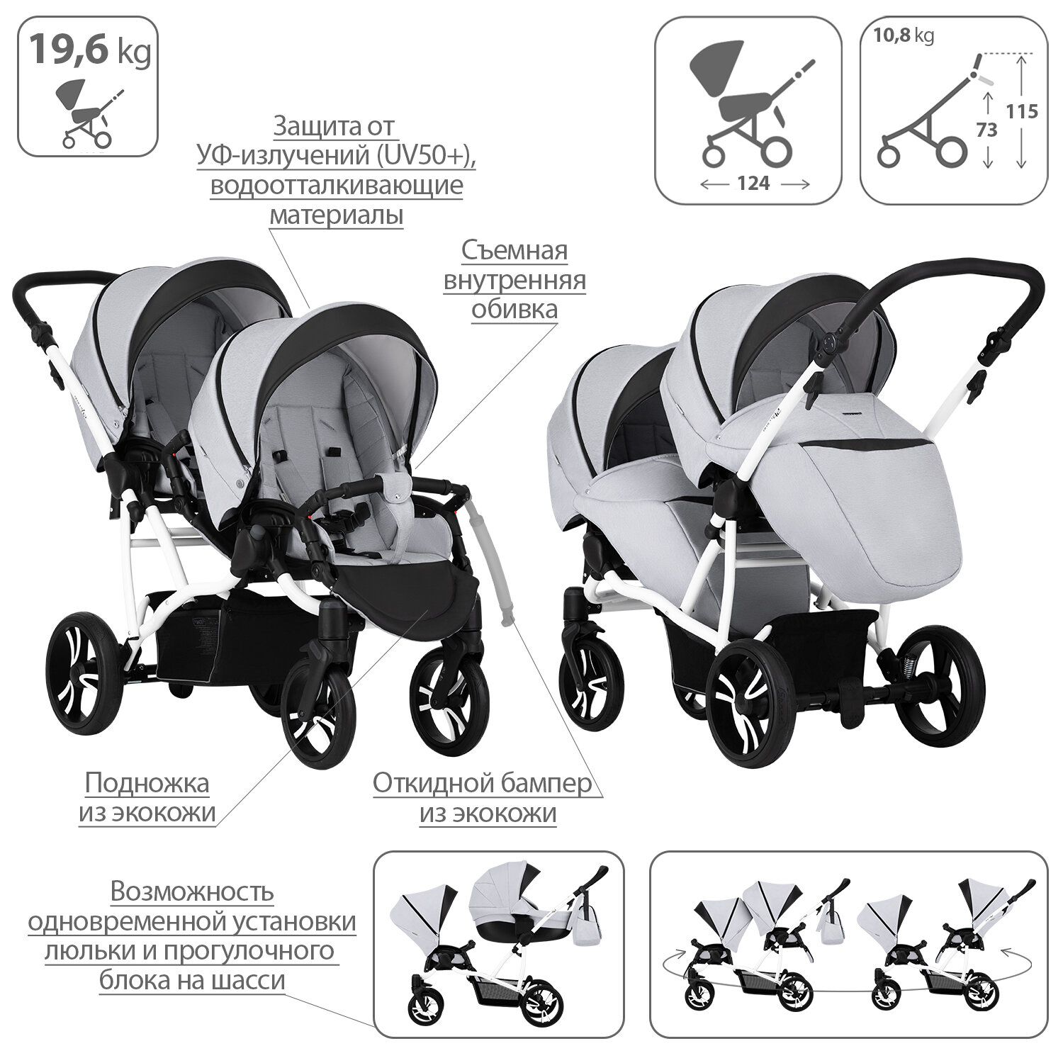 Купить Коляска для двойни Bebetto42 Comfort (2 в 1) 03_BIA