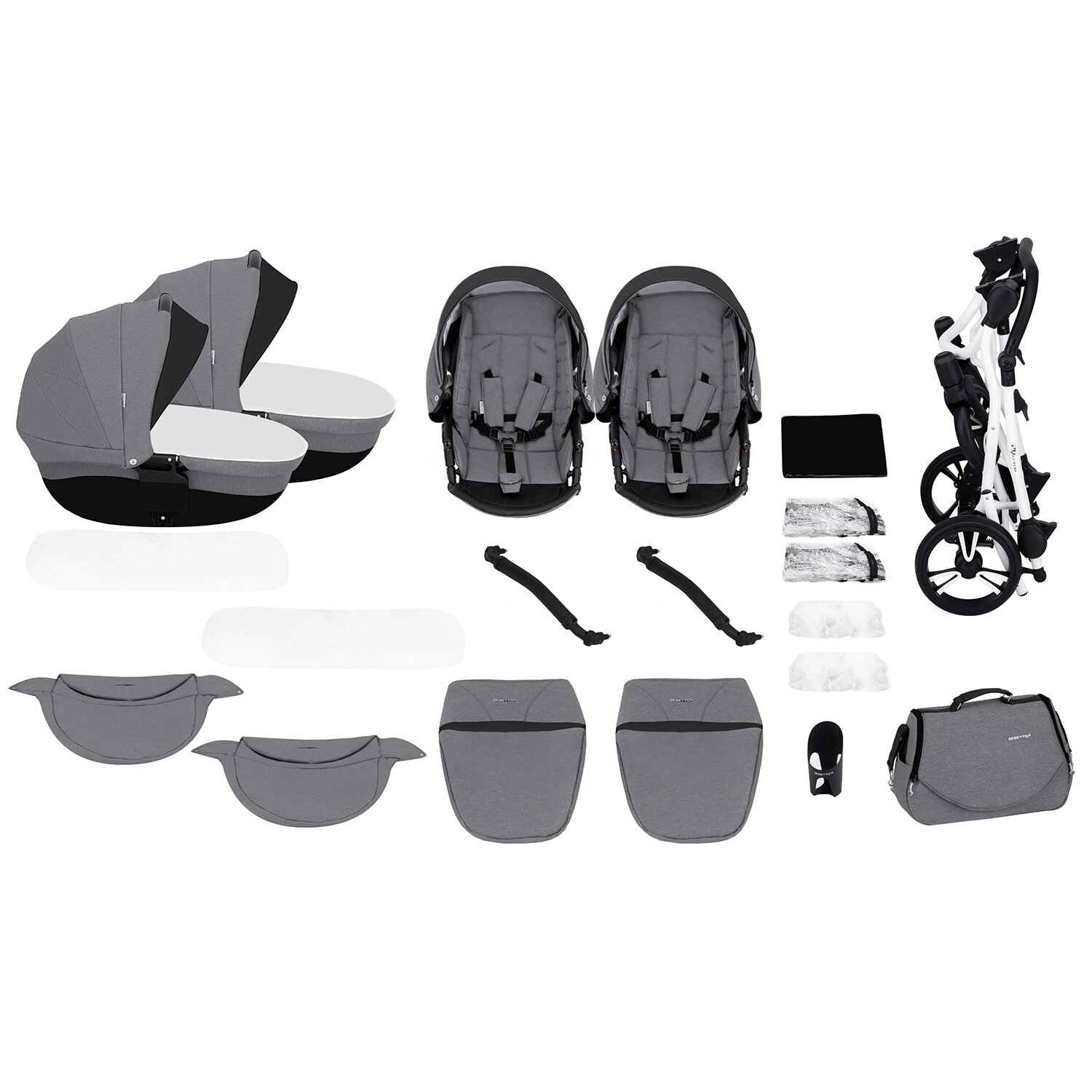 Коляска 2в1 Bebetto 42 Comfort для двойни шасси Белое 05