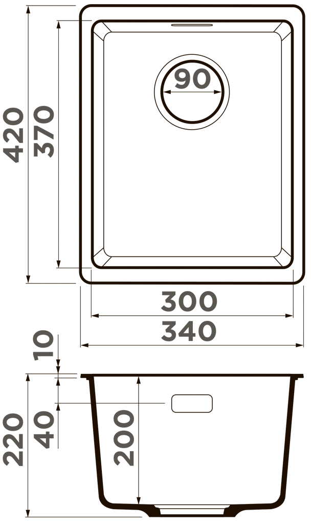 Кухонная мойка OMOIKIRI Kata 34-U-GR, кварц, 34см х 42см, темно-серый [4993383]