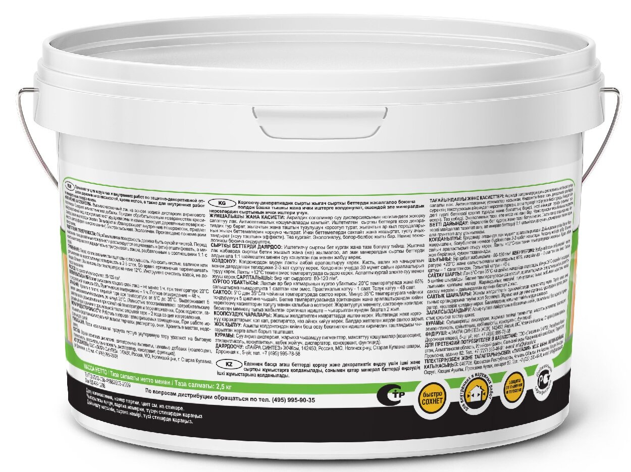 Лак акриловый лакра 2,5кг орегон, арт.лт-орегон2,5