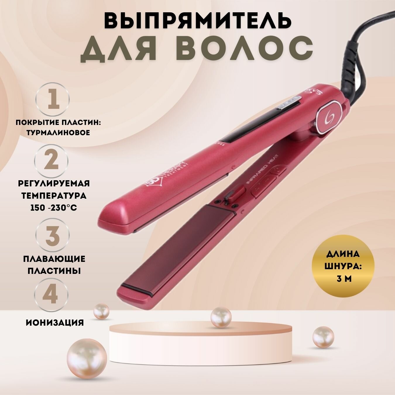 Выпрямитель GA.MA Starlight Digital Iht Tourmaline 5D (GI0102), красный