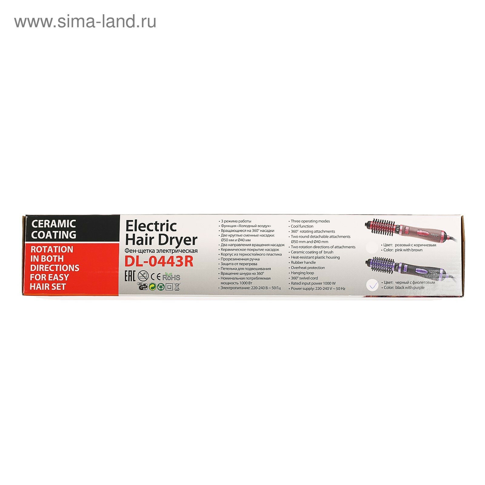Фены-щётки Delta Фен-щетка DELTA LUX DL-0443R, 1000 Вт, 2 режима, 2 насадки, черно-фиолетовая