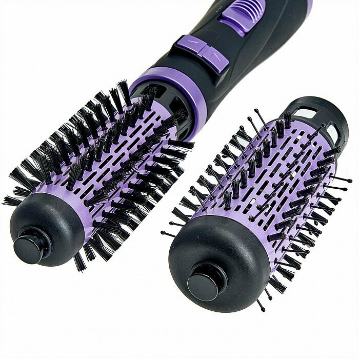 Фен-щетка LUX DL-0443R, 1000 Вт, 2 режима, 2 насадки, черно-фиолетовая