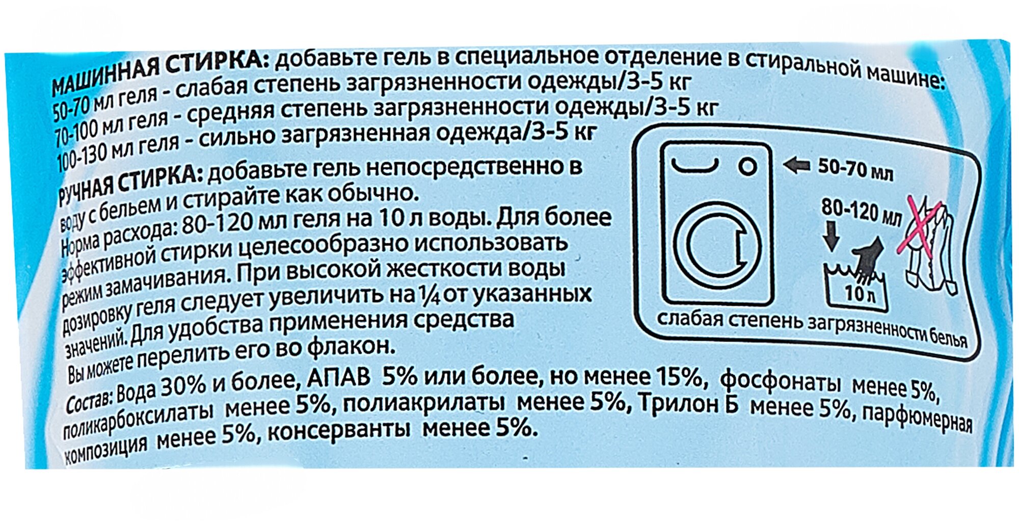 | Плюсы: | Ненавязчивый приятный запах, приемлемая цена, нормально отстирывают |