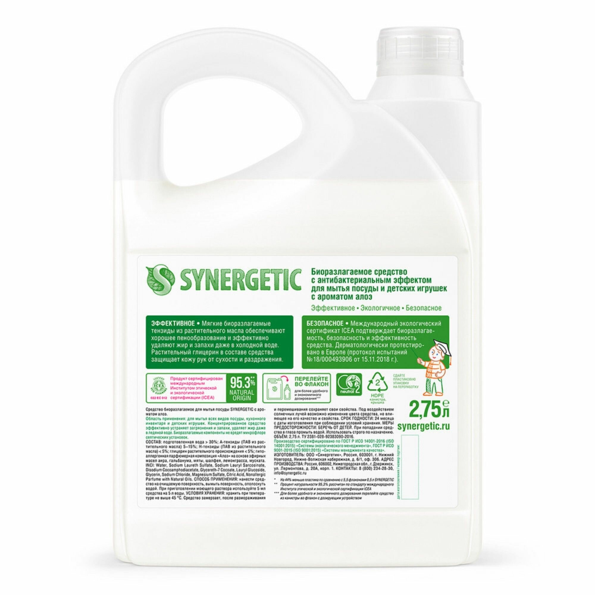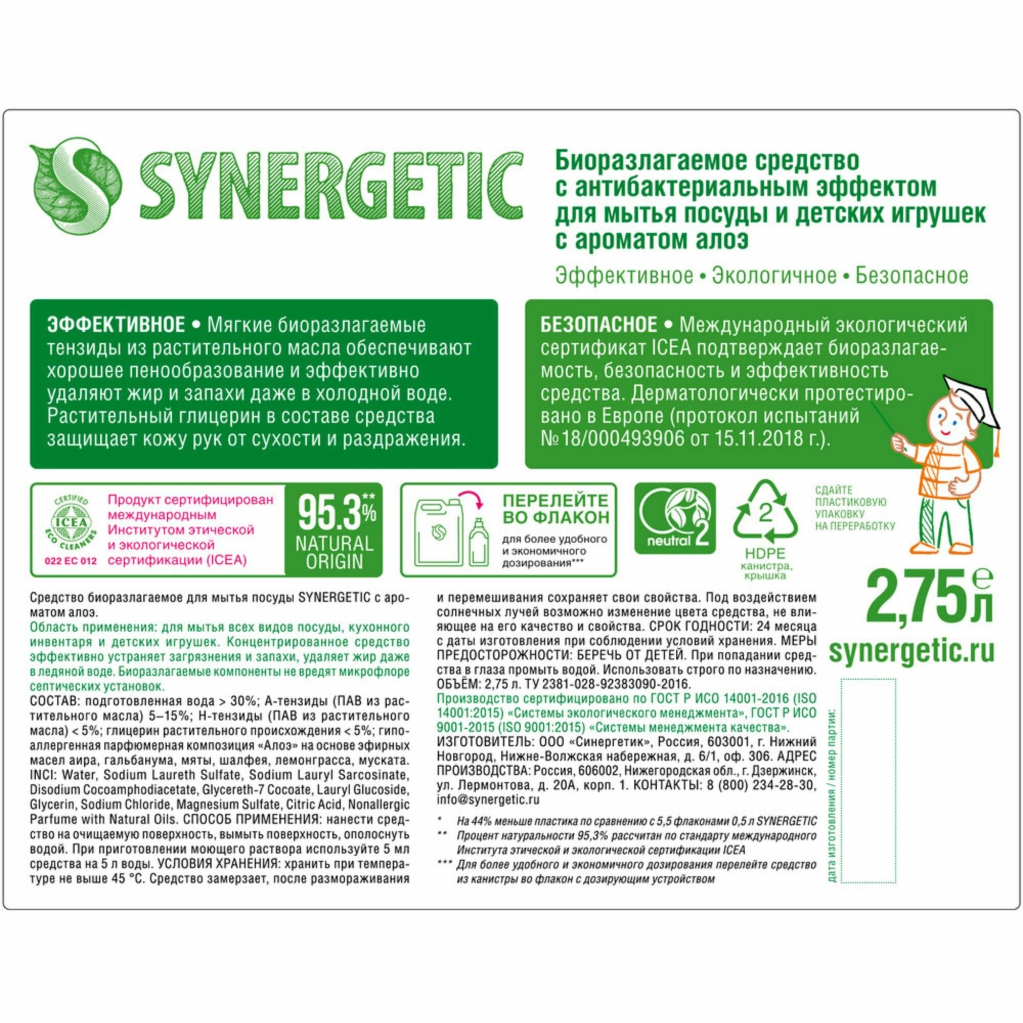 Synergetic Средство для мытья посуды Synergetic "Алоэ вера", с антибактериальным эффектом, 5 л